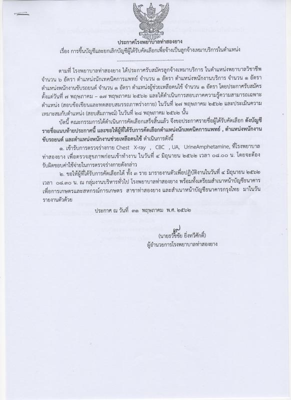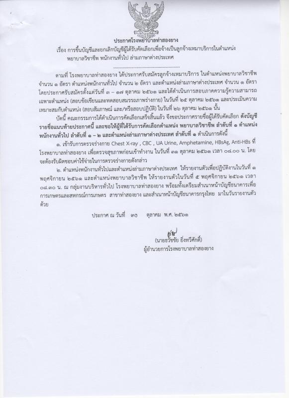 ประกาศรายชื่อผู้มีสิทธิ์เข้าสอบเพื่อจ้างเหมาบริการ โรงพยาบาลท่าสองยาง