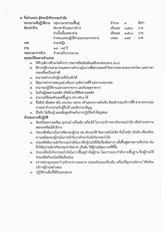 15 Jul 2563 at 09:46 Read 1652 ประกาศรับสมัครสอบคัดเลือกลูกจ้างเหมาบริการ เงินนอกงบประมาณ (เงินบำรุง) 1.เจ้าพนักงานพัสดุ 1 อัตรา 2.ผู้ช่วยนักกิจกรรมบำบัด 1 อัตรา ระหว่างวันที่ 15-22 กรกฏาคม 2563 ในวันและเวลาราชการ ภาคเช้าเวลา 8.30 -12.00น. ภาคบ่าย 13.00- 16.00น. ตามเอกสารที่แนบมา Photo gallery Share this post Tweet