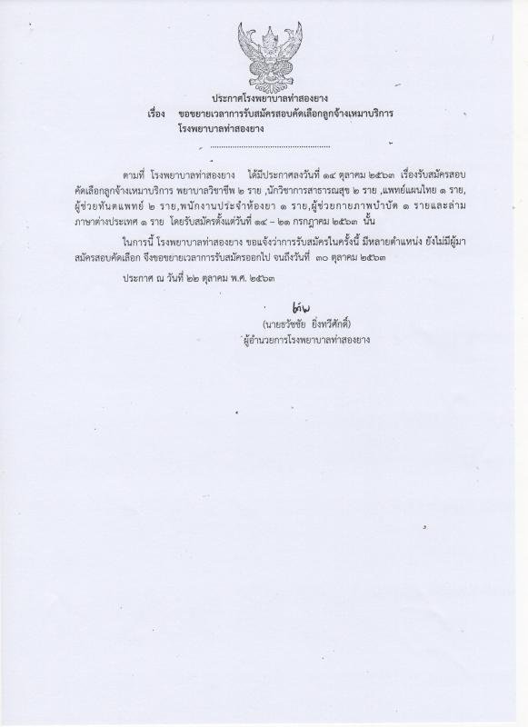 27 Oct 2563 at 09:17 Read 1138 ประกาศโรงพยาบาลท่าสองยาง ขอขยายเวลาการรับสมัครสอบคัดเลือกลูกจ้างเหมาบริการ โรงพยาบาลท่าสองยาง จากเดิมวันที่ 14-21 ตุลาคม 2563 ขยายวันรับสมัครออกไปจนถึงวันที่ 30 ตุลาคม 2563 เนื่องจากมีหลายตำแหน่ง ยังไม่มีผู้มาสมัครสอบคัดเลือก ส่วนวันสอบ จะแจ้งอีกทีในวันประกาศรายชื่อผู้มีสิทธิ์สอบครับ Photo gallery Share this post Tweet
