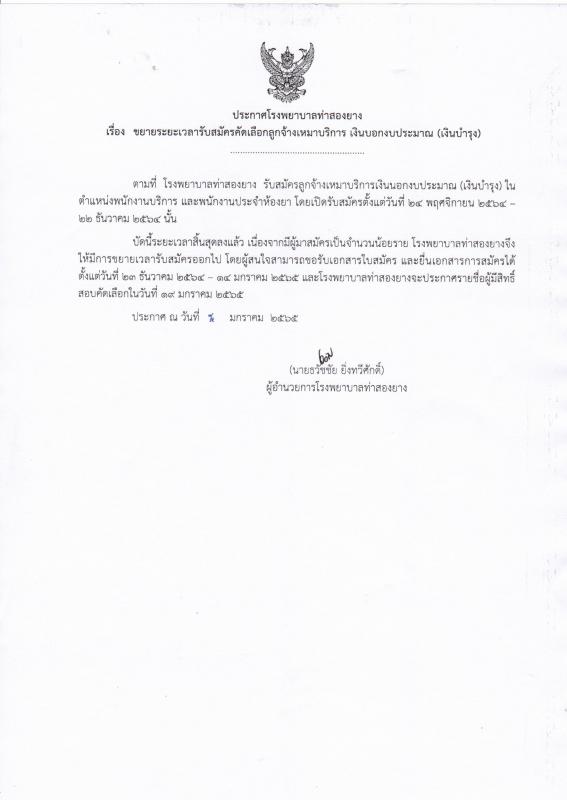 ประกาศ เรื่องขยายระยะเวลารับสมัครคัดเลือกลูกจ้างเหมาบริการ เงินนอกงบประมาณ (เงินบำรุง)