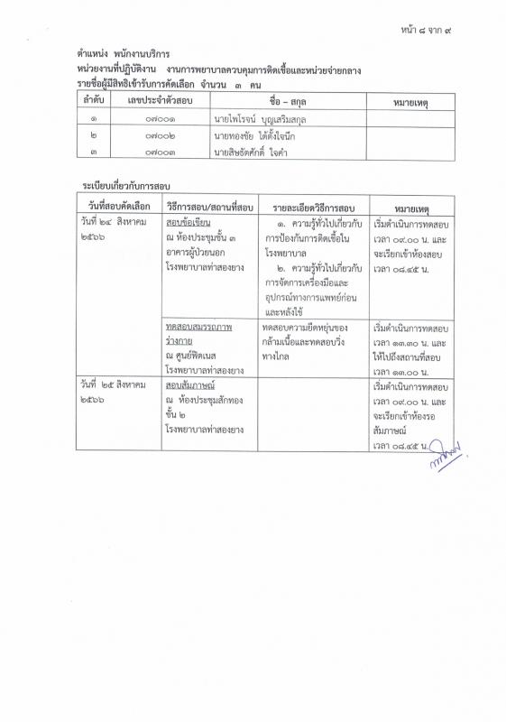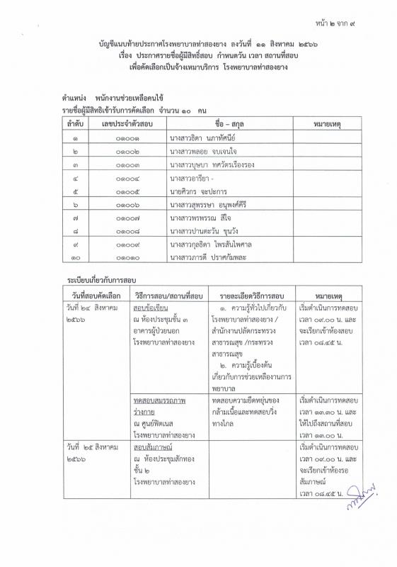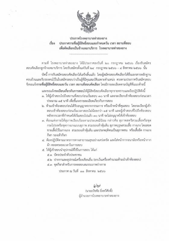 ประกาศรายชื่อผู้มีสิทธิ์สอบและกำหนดวัน เวลา สถานที่สอบ เพื่อคัดเลือกเป็นจ้างเหมาบริการ โรงพยาบาลท่าสองยาง