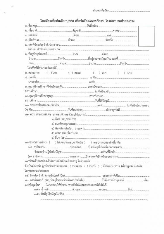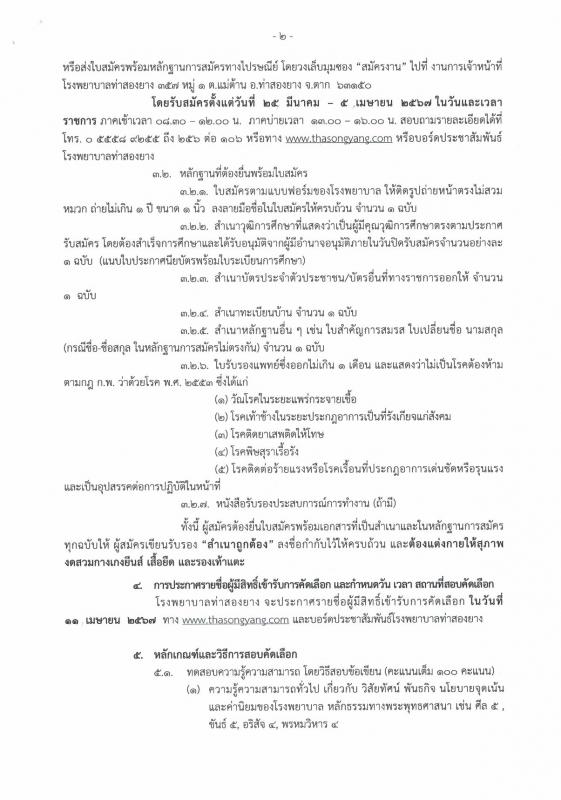 สอบถามเพิ่มเติมได้ที่เบอร์ ๐๕๕ - ๕๘๙๒๕๖ ต่อ ๑๐๖ หรืองานฝ่ายบริหาร(บุคคล) รพ.ท่าสองยาง