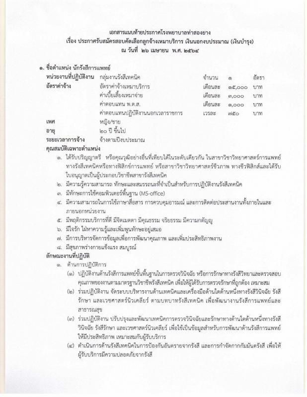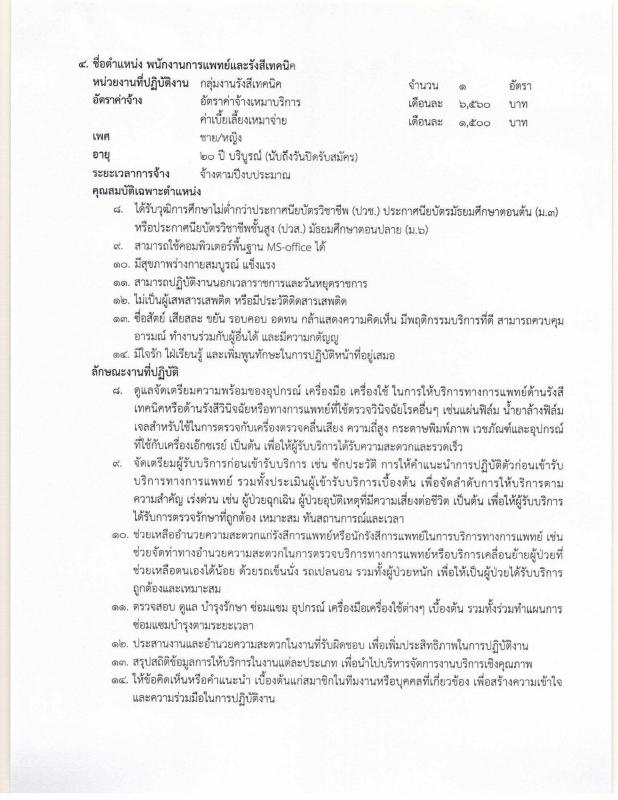 4.พนักงานการแพทย์และรังสีเทคนิค 1 อัตรา