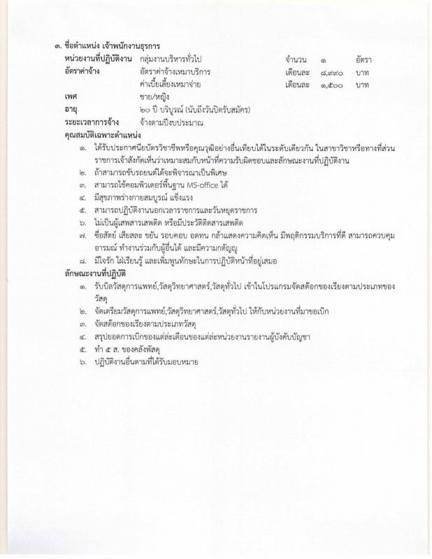 3.เจ้าพนักงานธุรการ 1 อัตรา