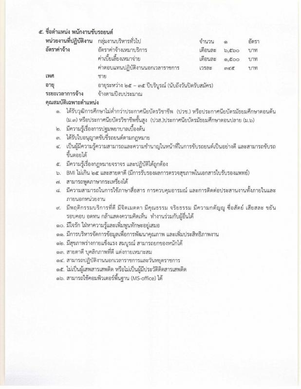 5.พนักงานขับรถยนต์ 1 อัตรา