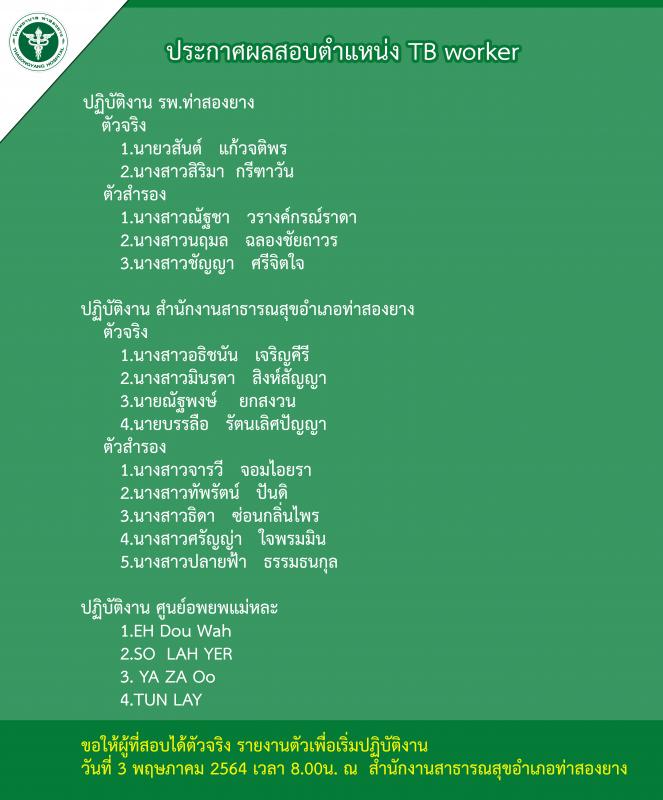 ประกาศผลสอบตำแหน่ง TB worker
