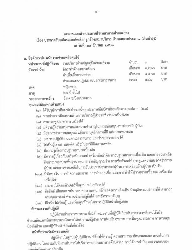 พนักงานช่วยเหลือคนไข้ จำนวน 1 อัตรา