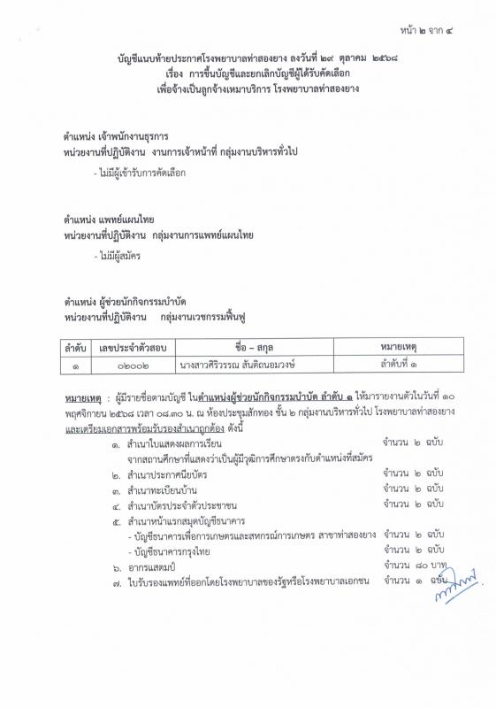 บัดนี้ การดำเนินการคัดเลือกลูกจ้างเหมาบริการได้เสร็จสิ้นแล้ว โรงพยาบาลท่าสองยางจึงขอประกาศรายชื่อผู้ได้รับคัดเลือก รายละเอียดตามเอกสารแนบท้ายประกาศนี้