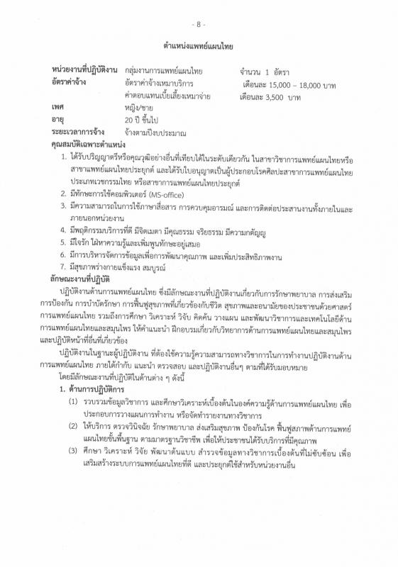 แพทย์แผนไทย 1 อัตรา