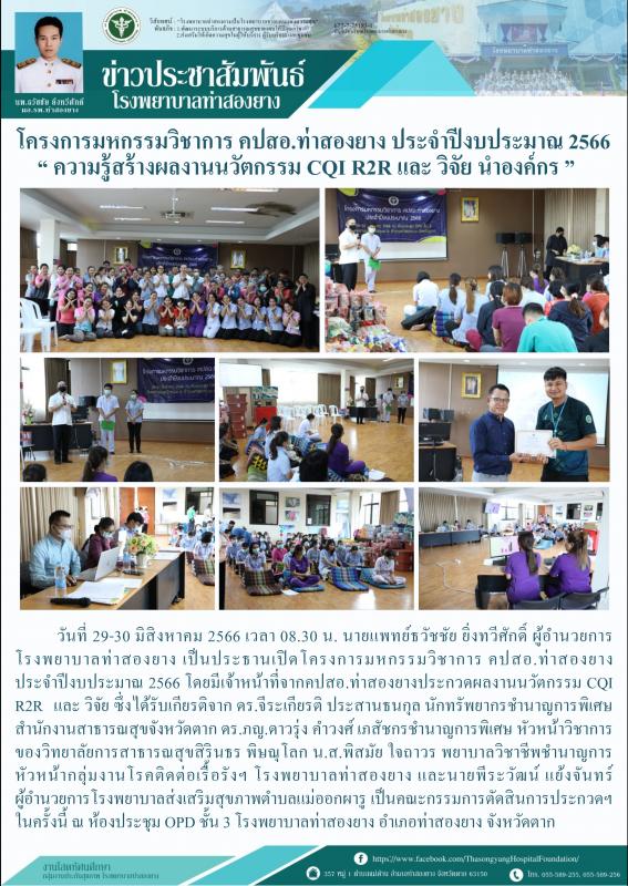 โครงการมหกรรมวิชาการ คปสอ.ท่าสองยาง ประจำปีงบประมาณ 2566