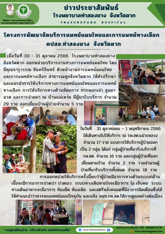 โครงการพัฒนาจัดบริการแพทย์แผนไทยและการแพทย์ทางเลือก คปสอ.ท่าสองยาง จังหวัดตาก