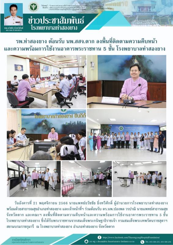 นพ.สสจ.ตาก ลงพื้นที่ติดตามความคืบหน้าและความพร้อมการใช้งานอาคารพระราชทาน 25 (อาคาร 5 ชั้น) ณ รพ.ท่าสองยาง อ.ท่าสองยาง จ.ตาก