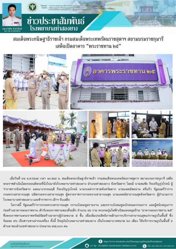 สมเด็จพระกนิษฐาธิราชเจ้า กรมสมเด็จพระเทพรัตนราชสุดาฯ สยามบรมราชกุมารี เสด็จเปิดอาคาร “พระราชทาน ๒๕”