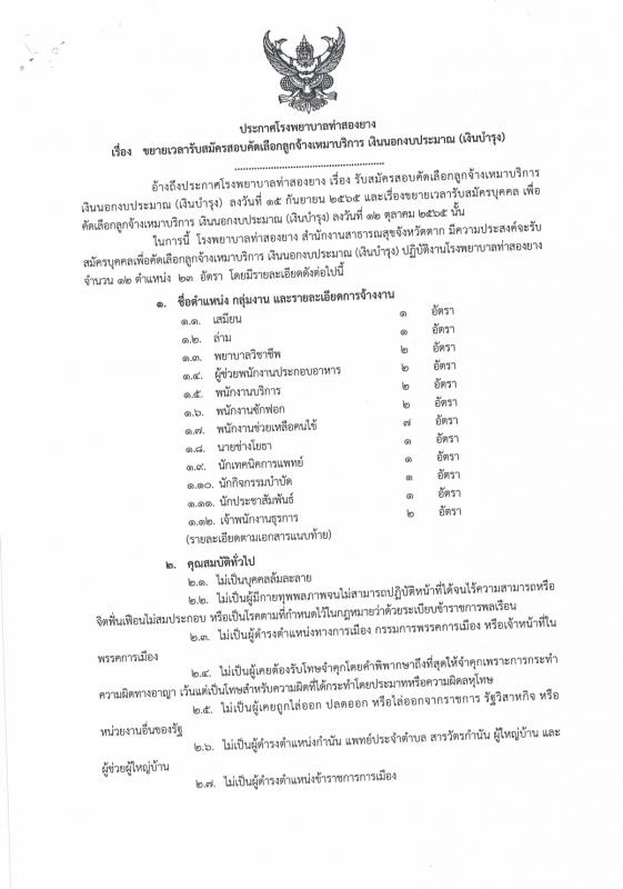 ประกาศขยายเวลารับสมัครบุคคล เพื่อคัดเลือกจ้างเหมาบริการ โรงพยาบาลท่าสองยาง